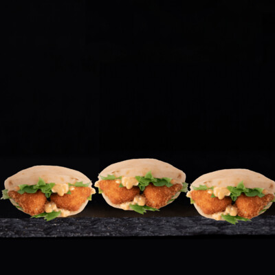 Crumbed Chicken Schnitzel + Melted Cheddar Cheese + Dill Pickles + Iceberg Lettuce + Stacked Burger Sauce on our Freshly Baked Pain de Campagne Long Roll